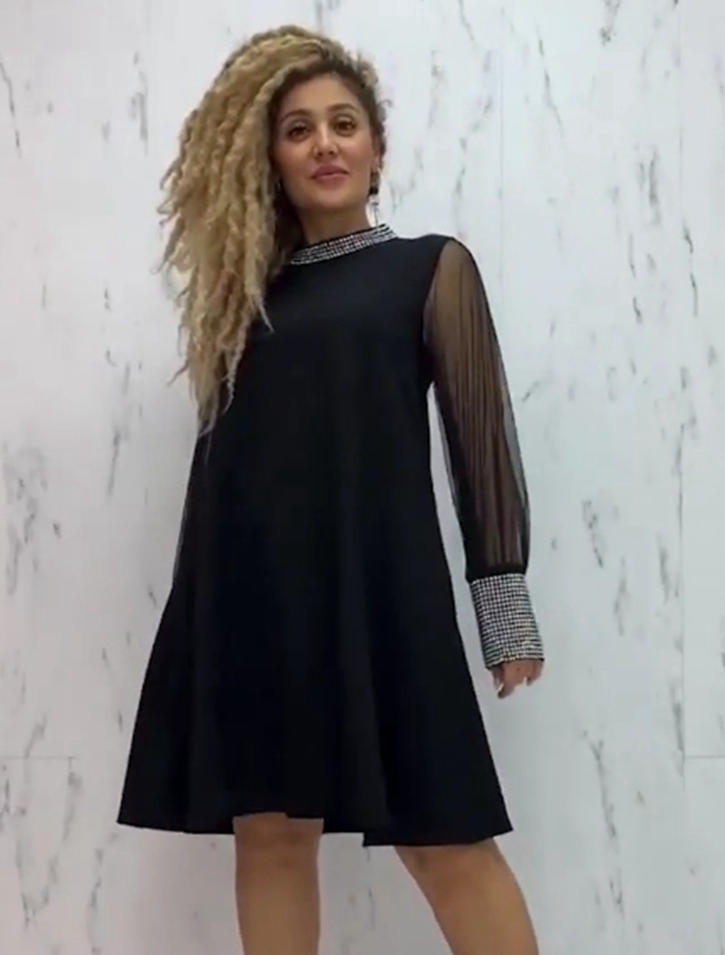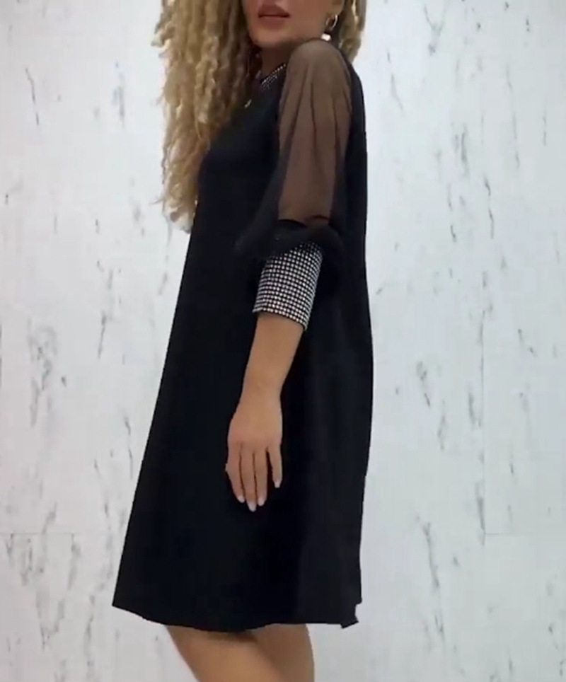 Fashion Diamond Round-neck Long-sleeved Dress Women's Clothing