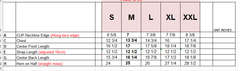 Sizes: