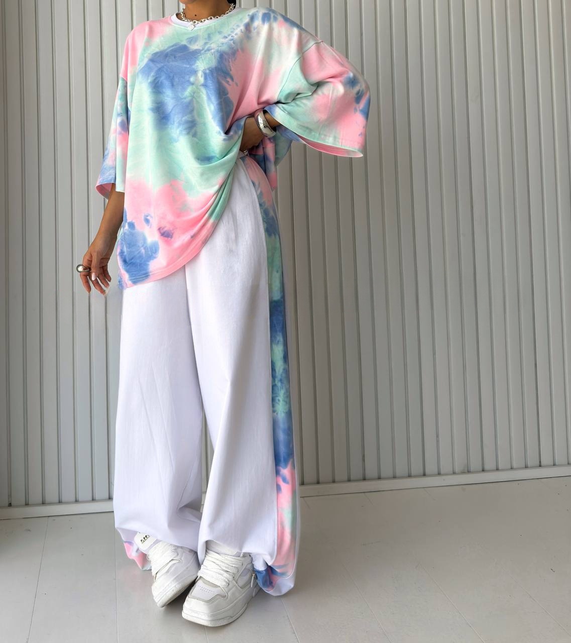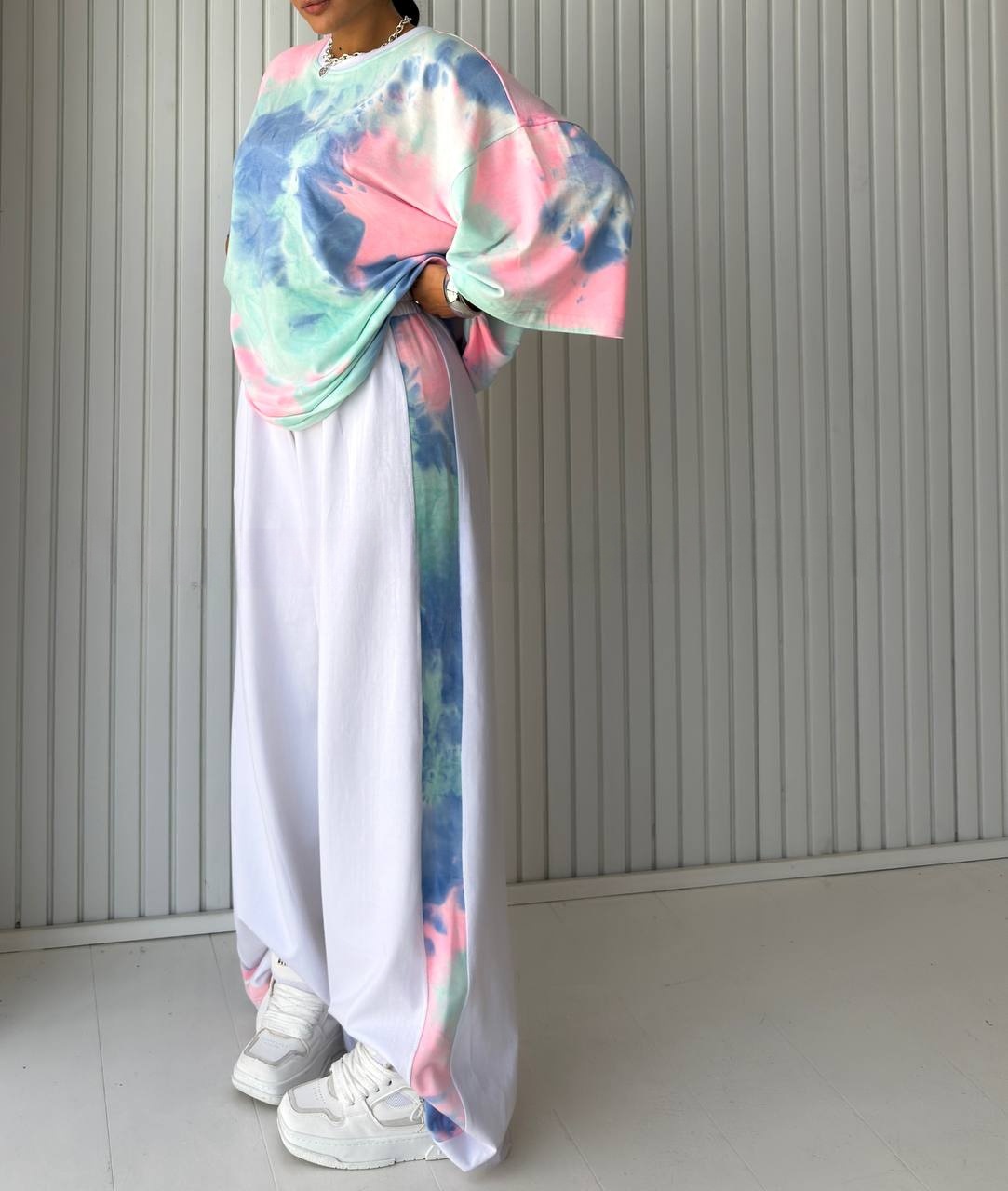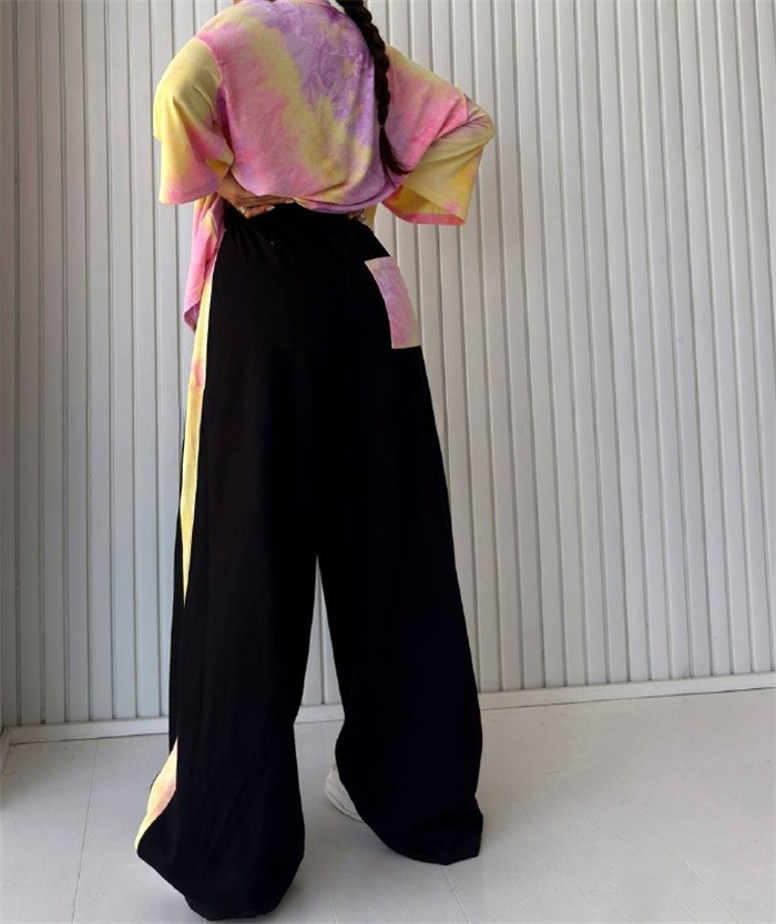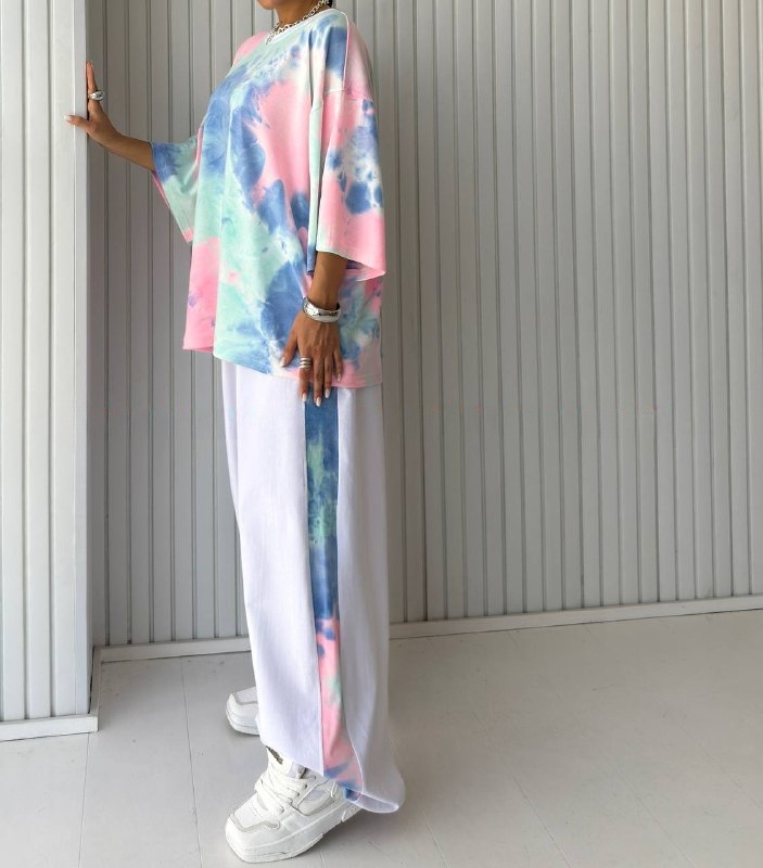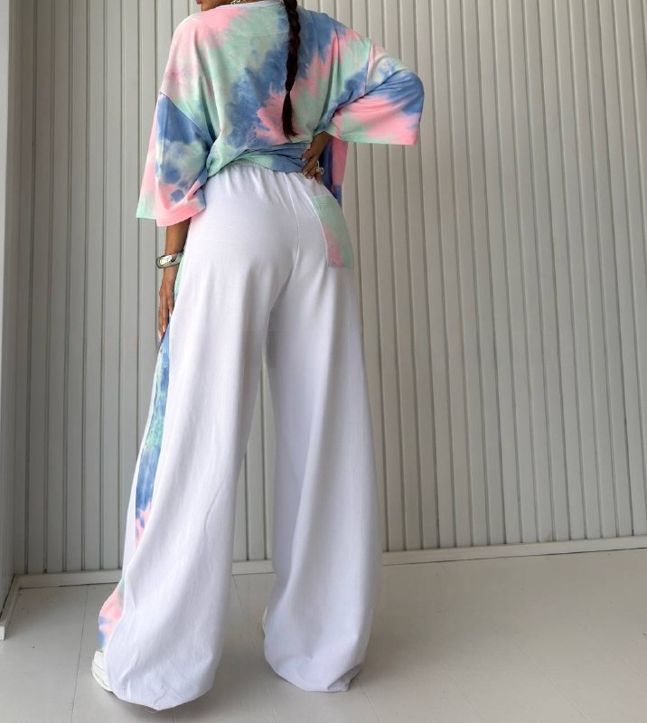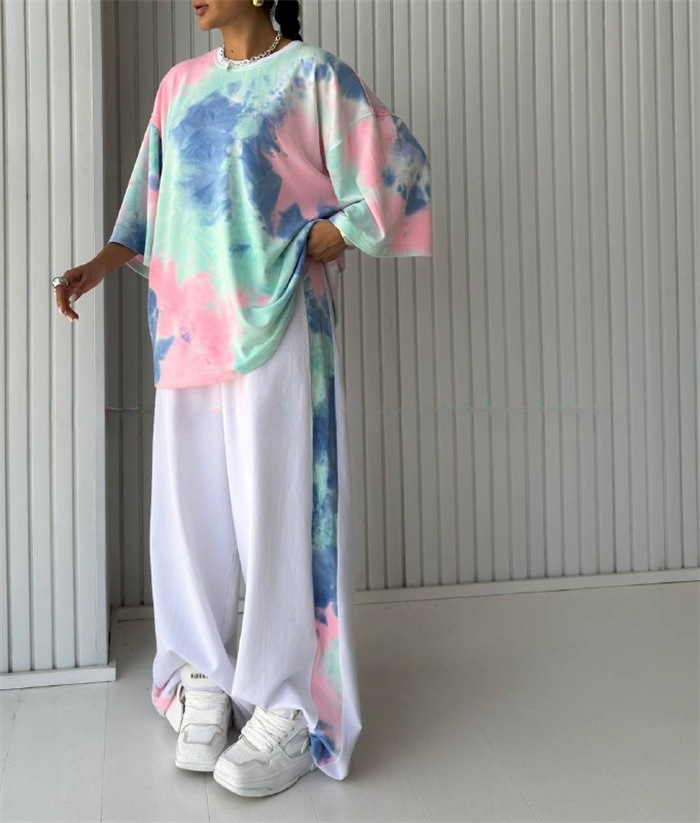 Womens Short-Sleeve Crew-Neck Tie-Dye T-Shirt And Pants Set